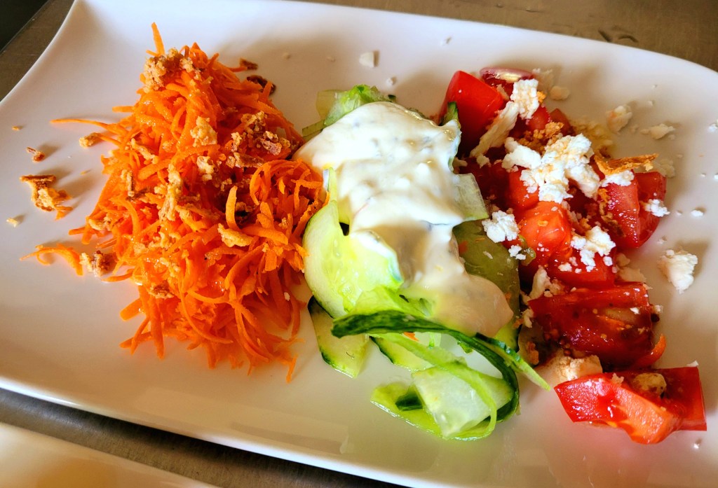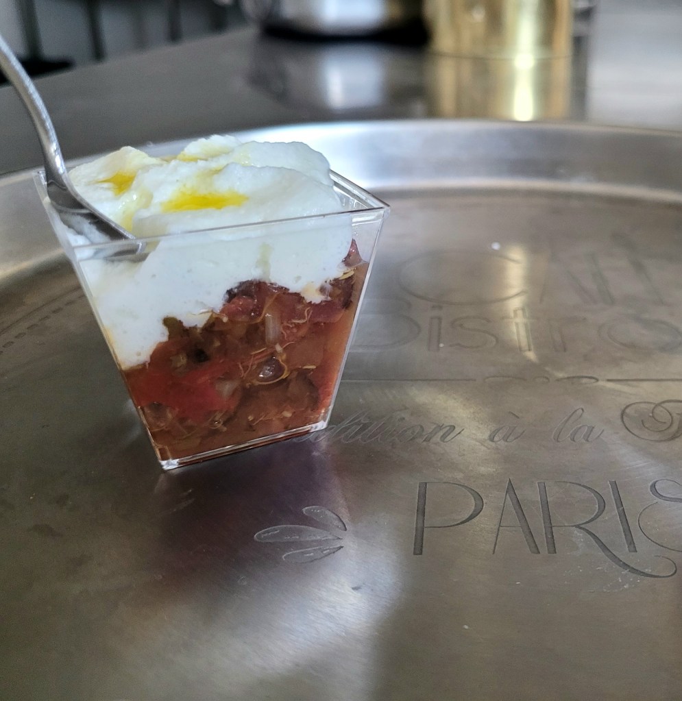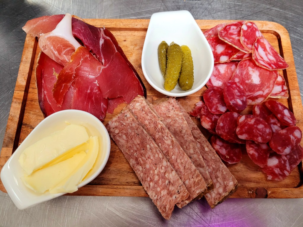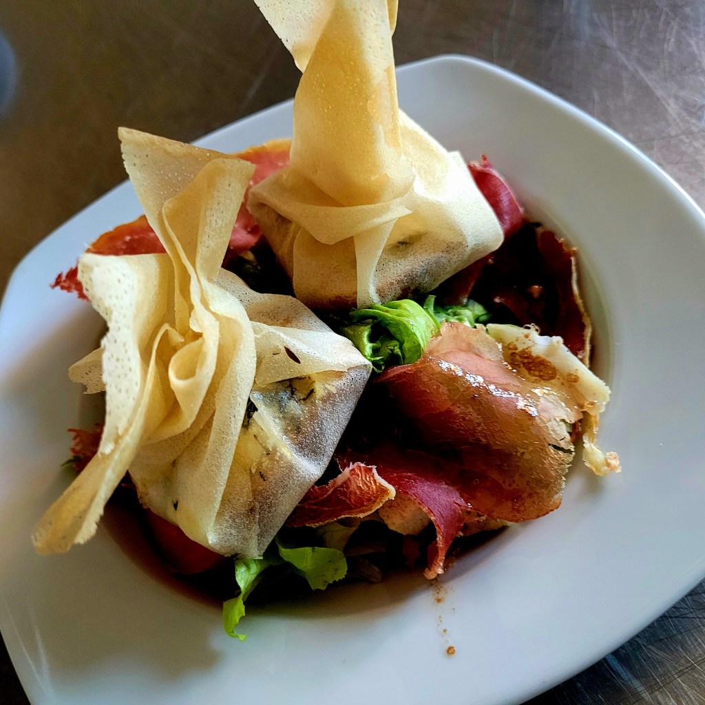 PissaladièreSpanakopitaantiboise et chantilly di BuffalaOeuf mimosaPlanche de charcuterieAssiette de cruditésTabouletCarpaccio de boeufChakras de morueHoumous de fèvesVelouté d’asperges, chantilly roquefortGuacamoles et mini crevettesSalade ZindBurrata – Coulis de tomatesSalade chèvre chaudSalade d’automneCouteaux en persilladeEscargots en brioche