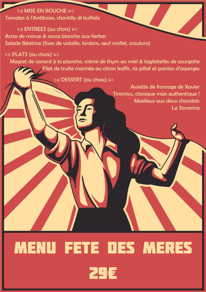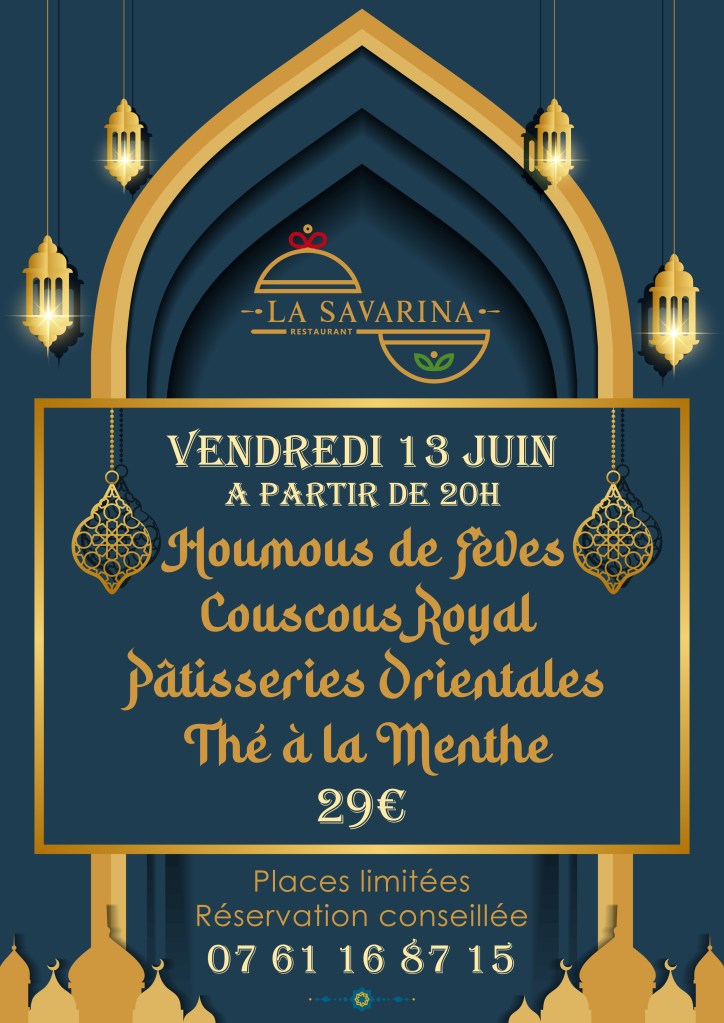 Soirée orientaleMenu fête des MèresThé glacé v1Thé glacé v2Lady SavarinaFormule ApéroBière LocaleVin LocalSoirée années 2000