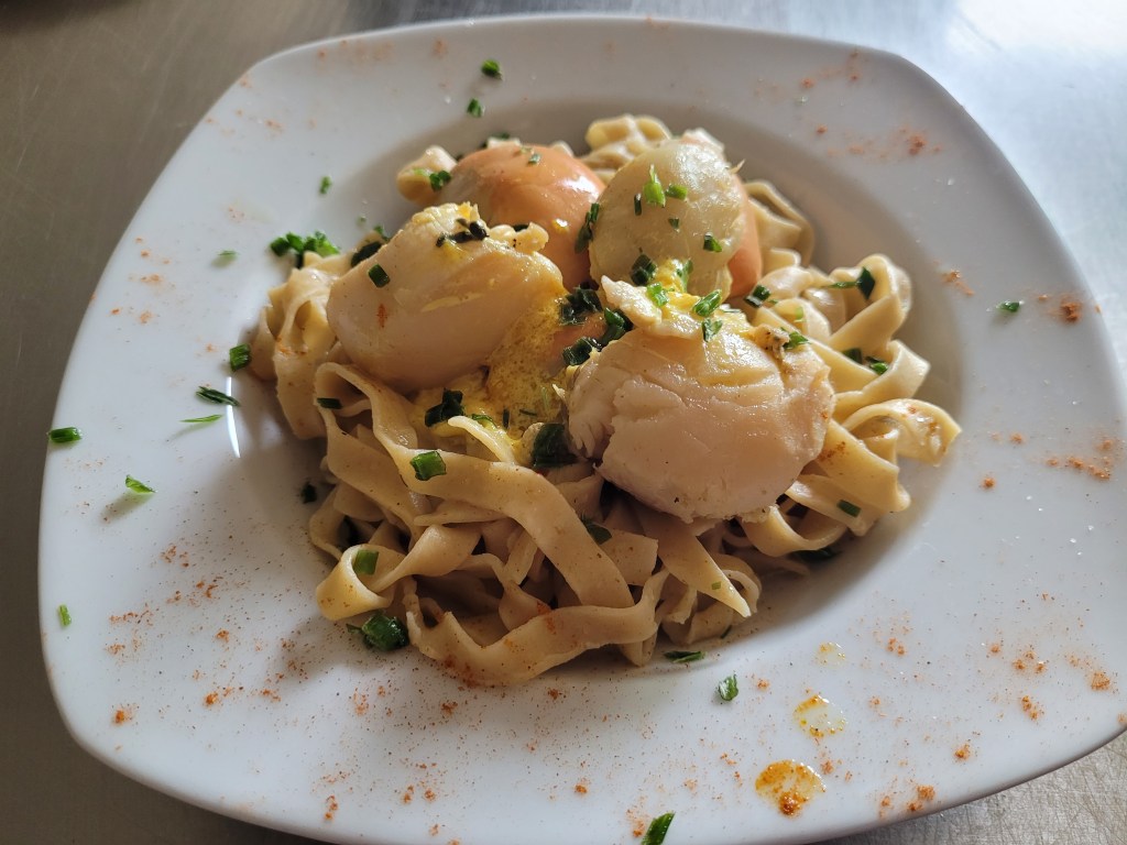 Osso bucco & polenta gratinéeChili con carneMagret de canard sauce au thymFilet de truite marinée et pointes d’aspergesFilet de daurade sauce viergeSpaghetti au pesto de brocolisBurger aveyronnaisDos de lieu noir au curryLégumes farcisAïoliiiii !Lieu noir lardé et légumesGambas en persilladeEpaule d’agneau a l’orientaleSalade CésarInside the burger !Tagliatelles aux St JacquesQueue de lotte à la Crème de RomarinBoudin aux 2 pommes